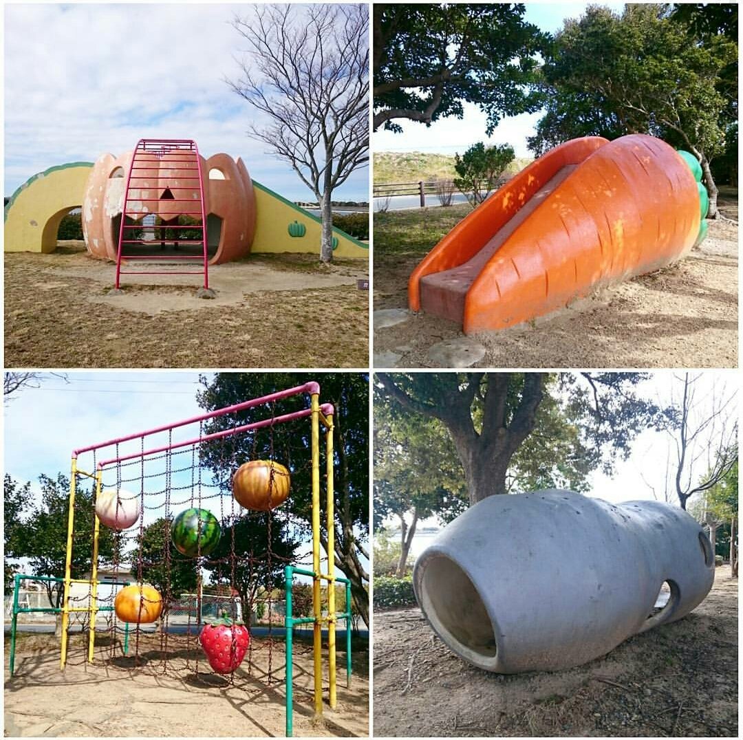 ▼愛知縣萬場調整池公園:這間公園裡的遊樂設施都是蔬果的造型,有紅蘿蔔溜滑梯、大蔥單槓、哈密瓜搖搖椅等等,真的很健康。