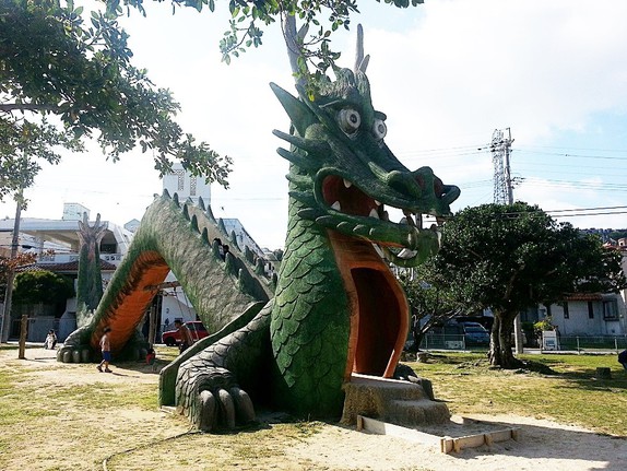 ▼沖繩浦添龍公園:公園中心有一條巨龍,製造商特意把它設計成溫柔善良的樣子,當地小朋友非常喜歡,還有人專門跑來參觀。