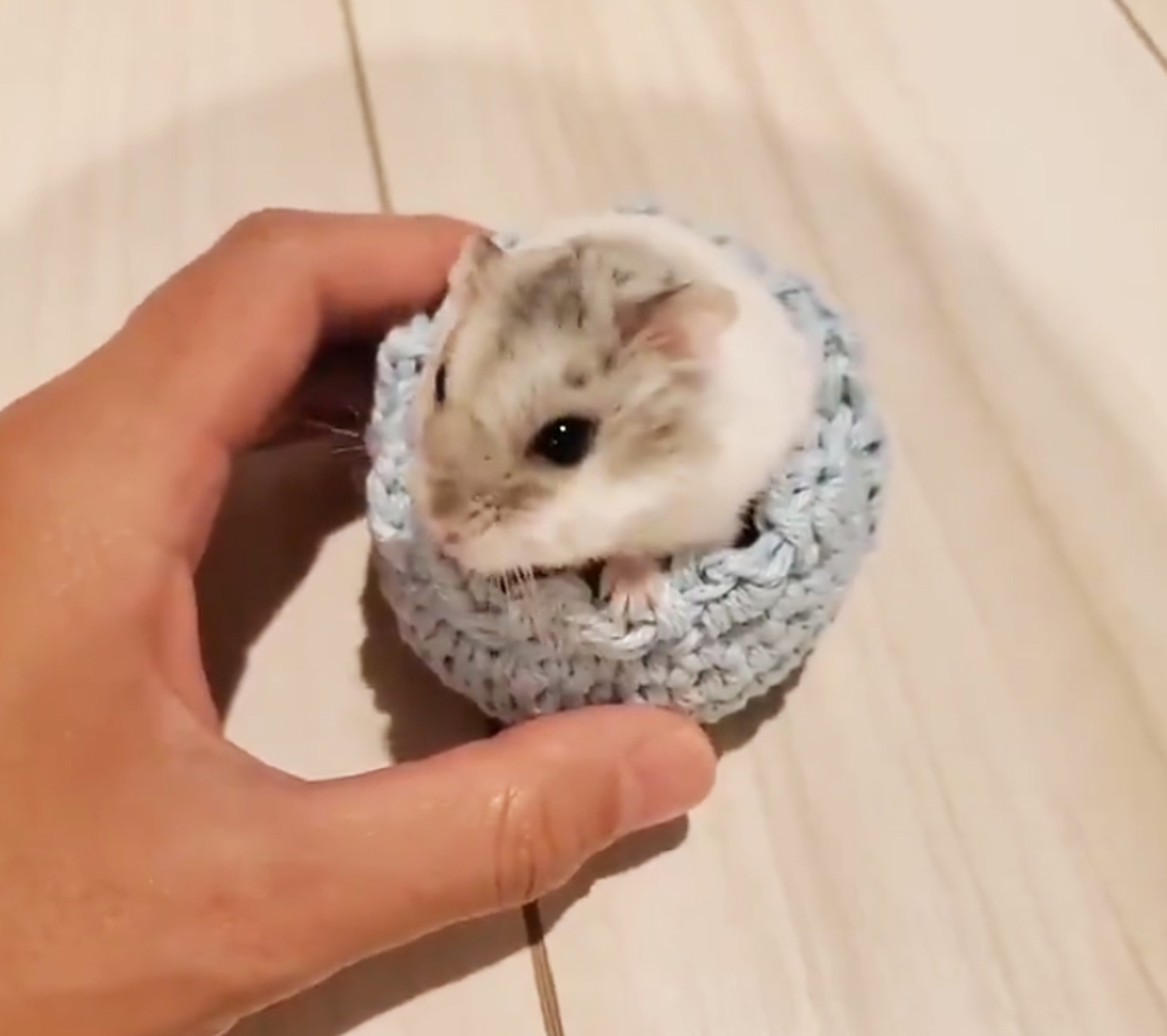 2020年06月21日很多倉鼠都喜歡待在狹窄的空間,大概因為這些地方讓牠們有安全感吧。日本推主@maruro989養了3隻可愛的小倉鼠,她平時會編織一些針織小物給小倉鼠們使用。最近她編織了一個針織籃子,小倉鼠看到後竟然鑽了進去,看起來超可愛~