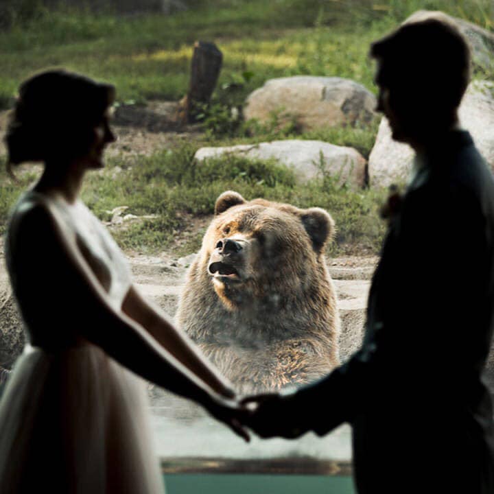 2020年06月22日在動物園拍婚紗照,往往會有一些驚喜的訪客亂入。2018年時,美國的一對新人到動物園拍攝浪漫的婚紗照,沒想到一隻熊熊跑過來圍觀。牠搶走了新人們的風頭、成為了照片中的焦點,那可愛的表情讓人忍俊不禁。
