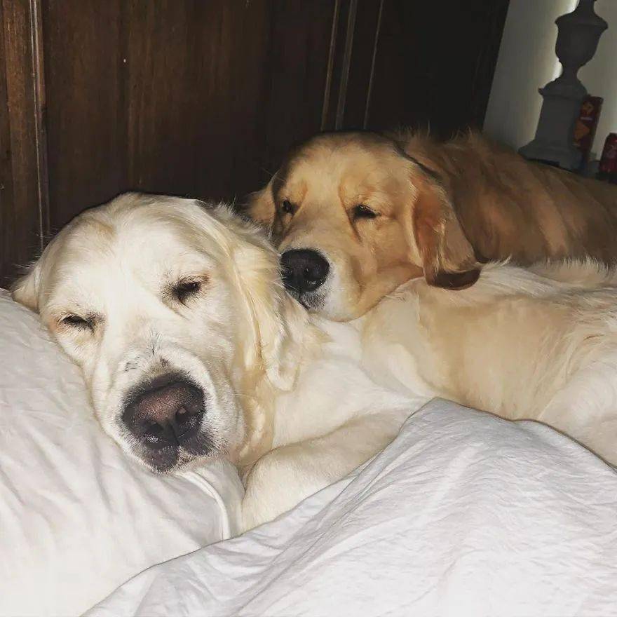這位飼主家裡有3隻阿金,真是太幸福了。狗狗們都相處得很融洽,互相當枕頭的小習慣也很可愛啊~