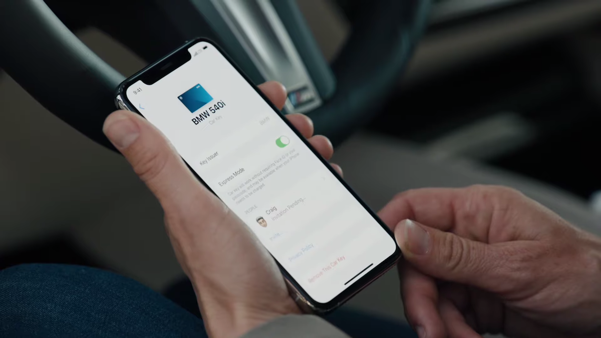 可以用蘋果手機解鎖2021 BMW 5系列汽車,將手機充當數位車鑰匙,並可以用iMessage和他人分享自己的車鑰匙,並且只要將手機放到車內充電板上,車子就可以發動了。