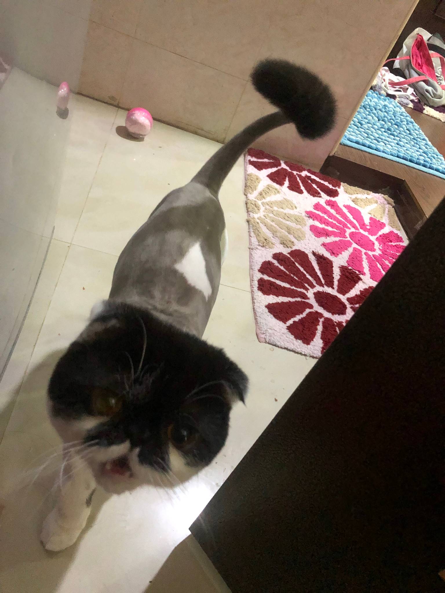 ▼貓咪氣氣啦,快拿小魚乾哄哄牠。