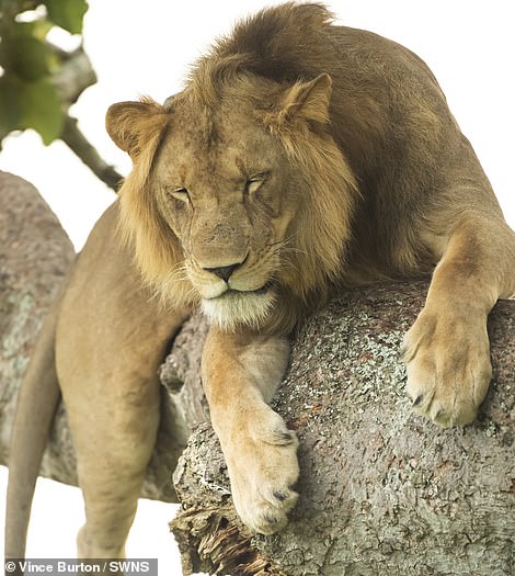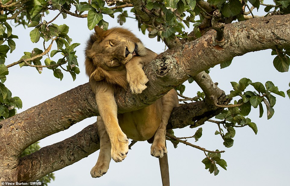 ▼Vince 也被這罕見的畫面所感動了,他表示「雄獅的爬樹能力比不上其他的大型貓科動物,不過很顯然伊麗莎白女王國家公園的獅子已經完全掌握了爬樹的能力。」