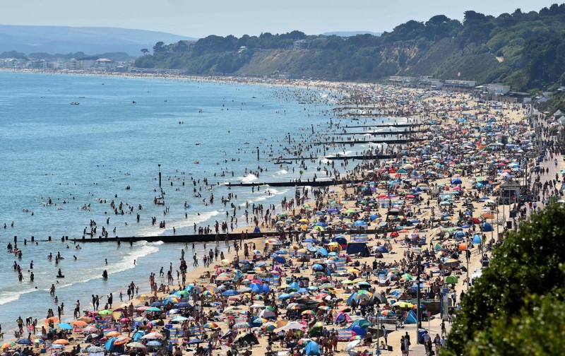 2020年06月27日英國熱浪來襲,很多人顧不上保持社交距離,去海灘避暑。伯恩茅斯(Bournemouth)多塞特海灘上,放眼望去非常擁擠,全是人潮,足足有50萬人。當地議會擔心出現公共衛生危機,連忙宣布「重大事件」。