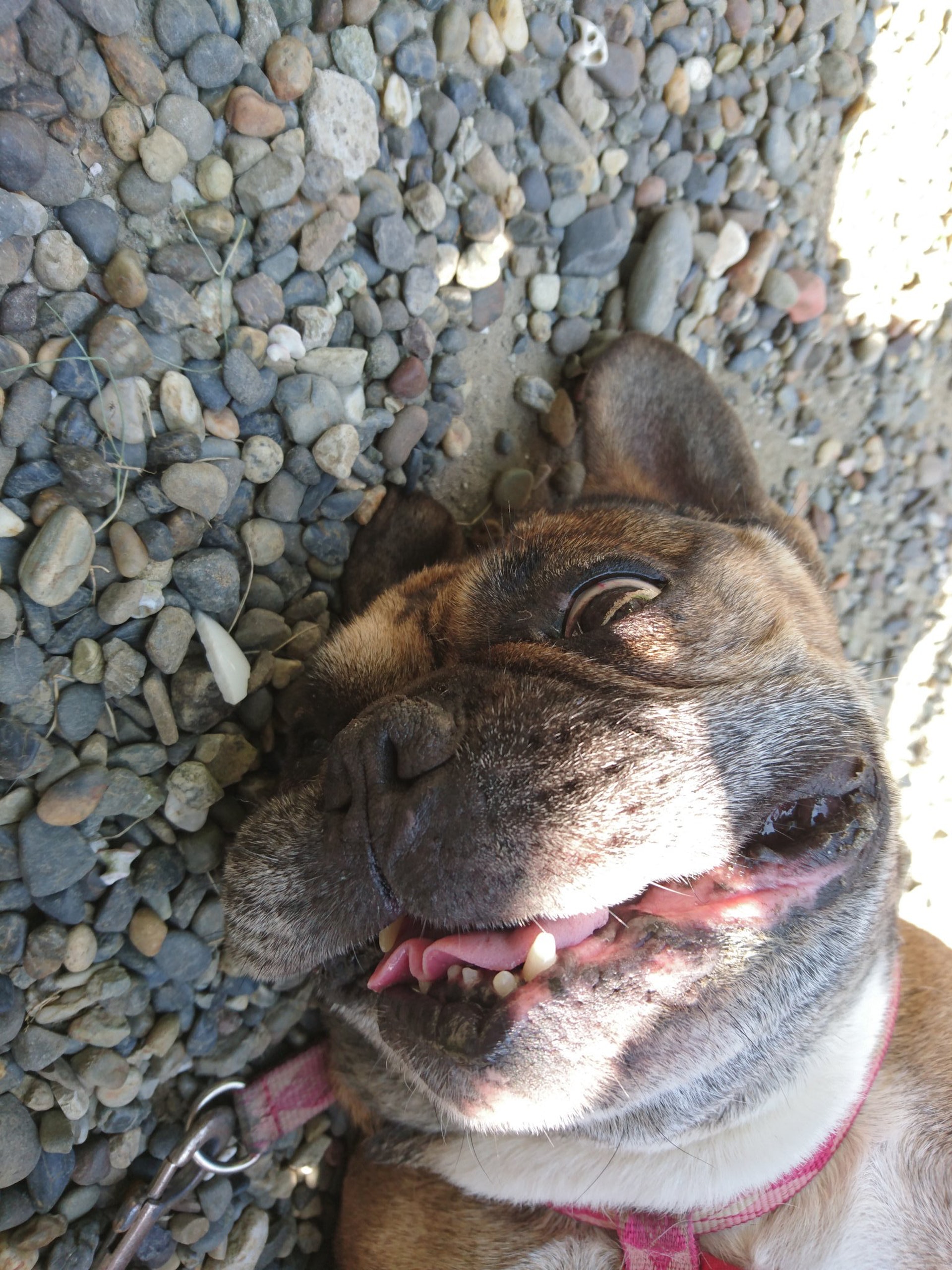 ▼其他網友看到後紛紛po出自家法鬥犬的搞笑醜照:這到底是睜著眼睛還是閉著眼睛?