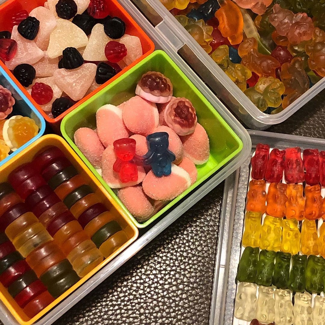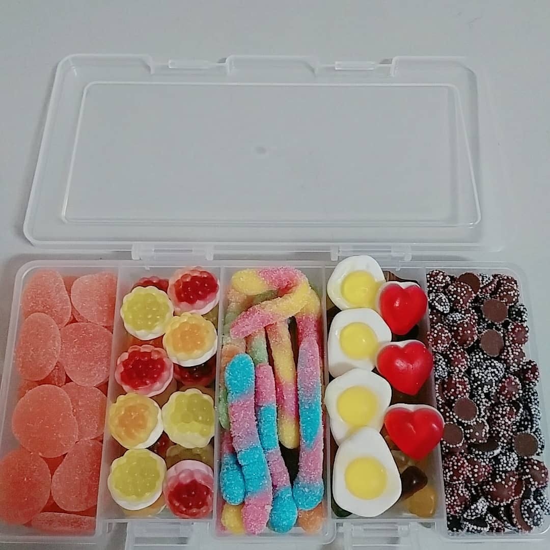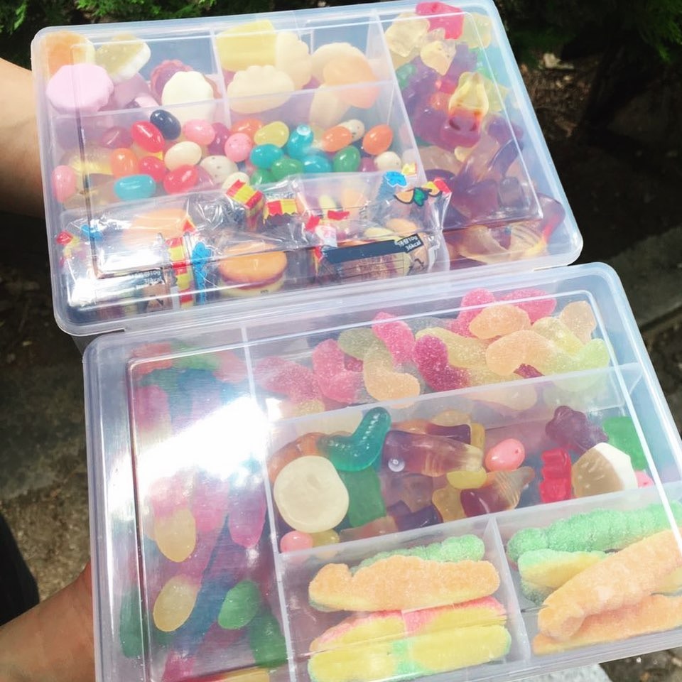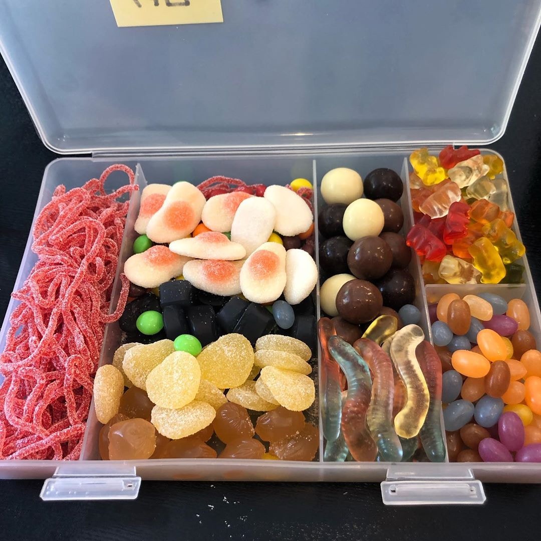 ▼這些「飯盒」分為一個個小格,裡面裝著不同的糖果和零食。軟糖被分類放好,想吃哪一種就拿哪一種,一目了然。