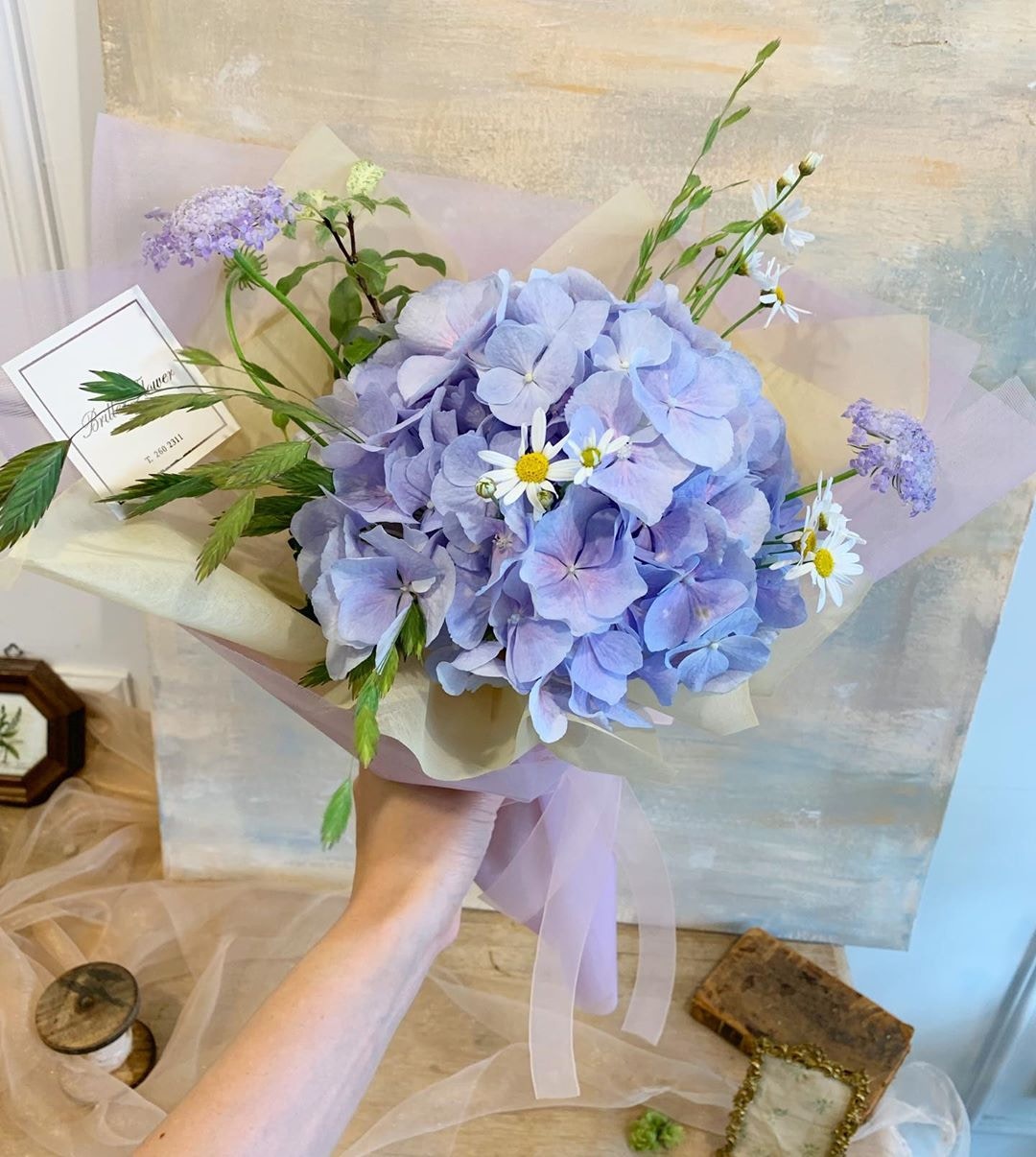 ▼紫色繡球花:真心。