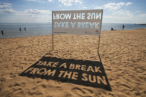 ▼5.在沙灘上曬太陽久了,記得到陰影處休息一下。