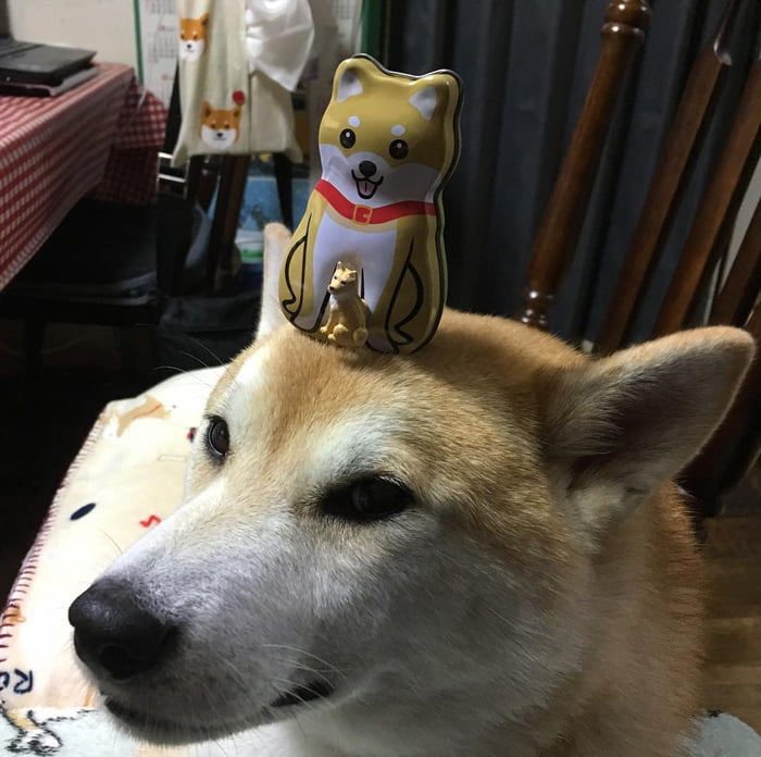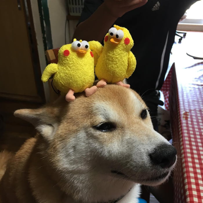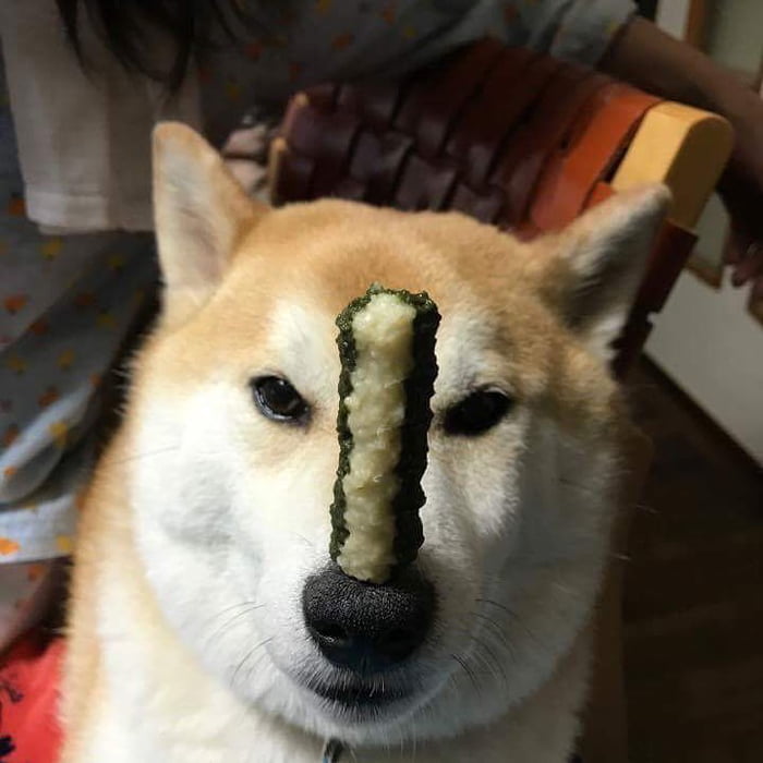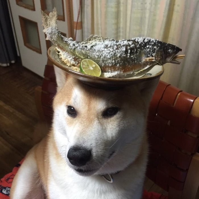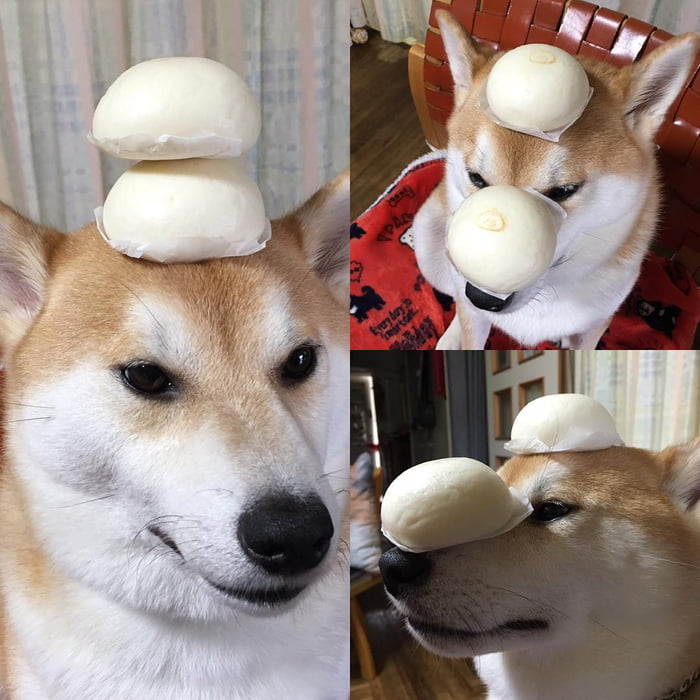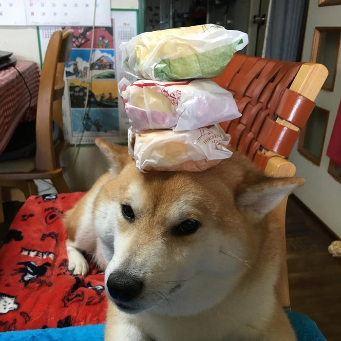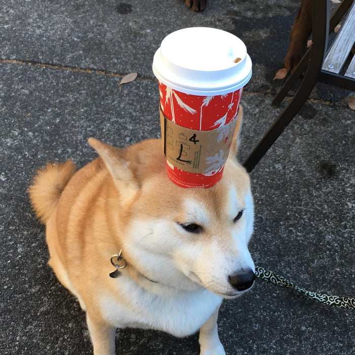 最佳平衡感! 萌柴柴「烤魚、星巴克」頂好頂滿 「什麼都放頭上」牠眼神超無奈:玩我玩夠沒?