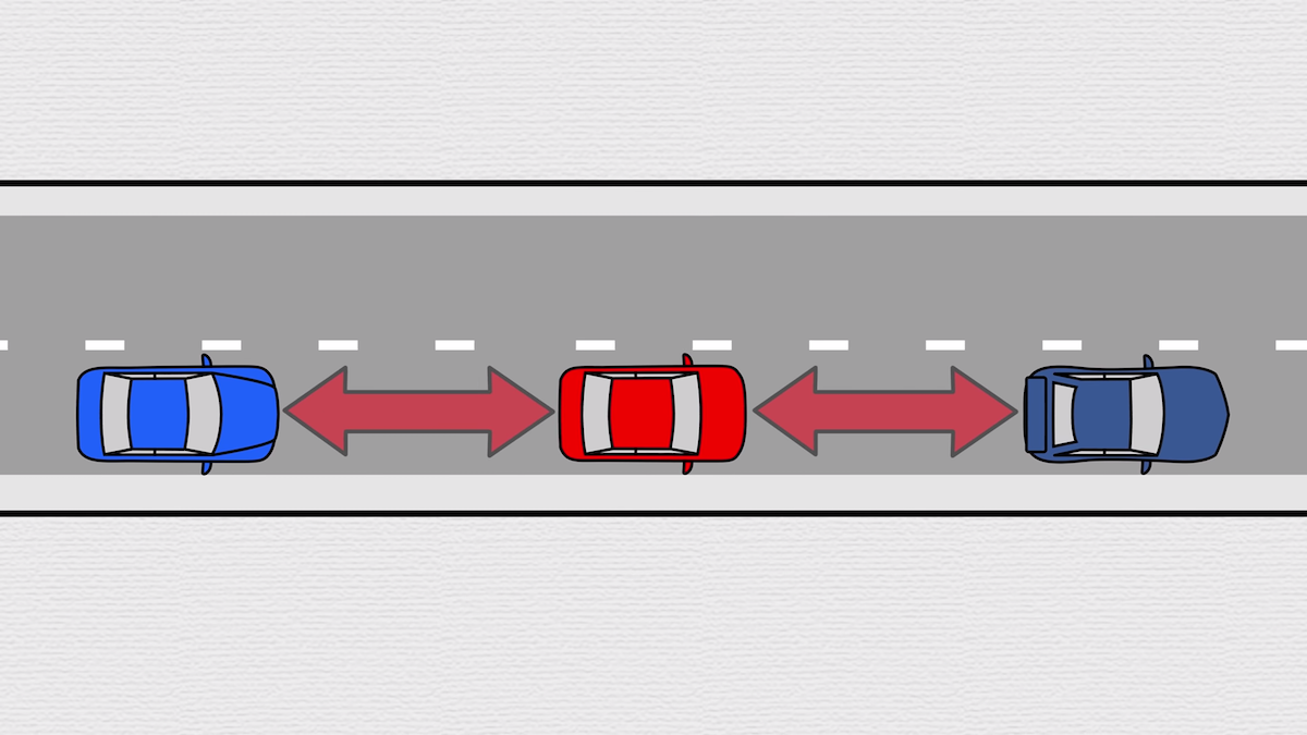 ▼所以若是路上原本就沒有什麼狀況,而駕駛們都能相互協調,調整行車的距離,交通就能順利恢復順暢。而在「多線道的高速公路」上,則根本不需要一隻雞,只要有車子隨意變換車道,快速切入旁邊車道又不注意保持與後方車輛的距離,造成後方車輛過度煞車,連鎖反應之下,又形成停停走走的情況。