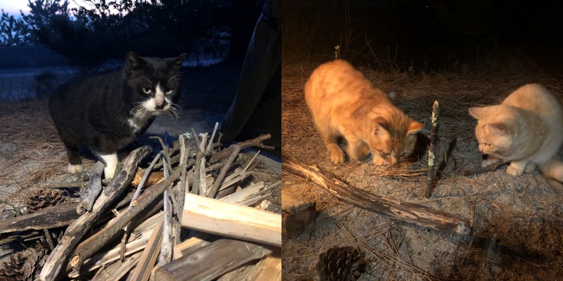 ▼不料,入夜後營火升起來時,貓咪卻越來越多,開始聚集起來…