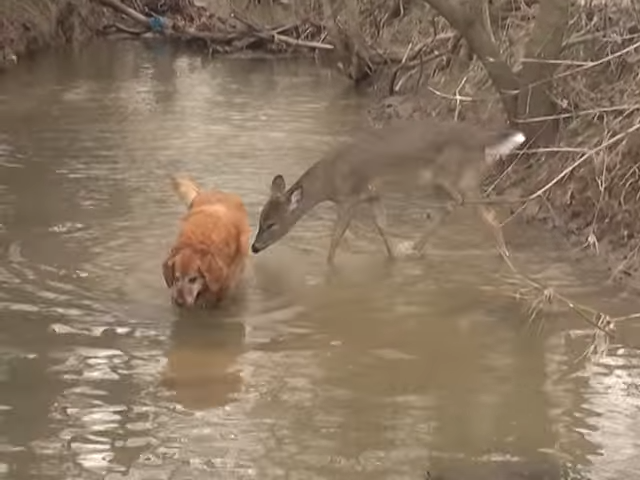 有新朋友了! 阿金河邊戲水「邂逅森林小鹿」 雀躍小鹿「興奮嗨跳」停不下來:快一起來跳舞~