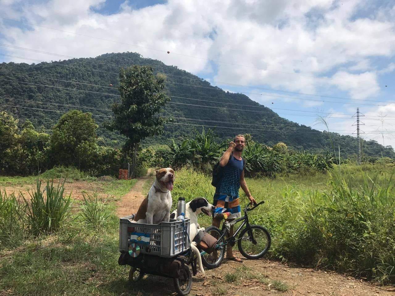 2020年07月08日這位來自阿根廷的33歲男子名叫格雷夫(Michael Graef),在秘魯旅遊時,剛好遇到COVID-19蔓延,當地宣佈緊急封鎖令,有許多航班被迫暫停,他因為不願拋下自己路途中收養的兩隻狗狗,花了40天的時間,騎乘一輛自行車改裝三輪車,靠雙腳將狗狗一起載到秘魯首都利馬。