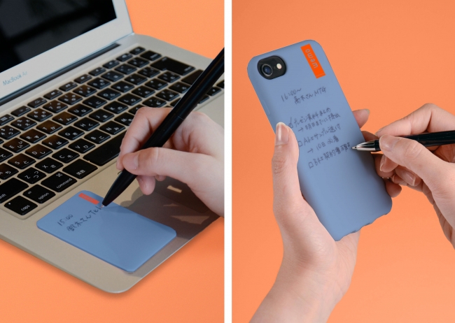 ▼可書寫手機殼:這款手機殼外觀樸素,但材質特別。它的表層是特別的塗料,能夠當成筆記本來用,拿油性筆就能書寫,碰到水字跡也不會模糊或消失。擦掉的時候也很簡單,用橡皮擦或手指都能輕鬆擦乾淨。