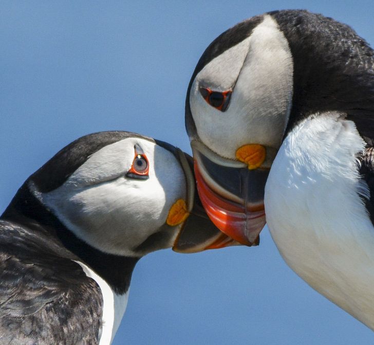 ▼7.北極海鸚:牠們會互相磨蹭鳥喙親吻,每年還會回到同一個地方築巢。雌鳥孵蛋時雄鳥負責找食物,並保護鳥巢的安全。