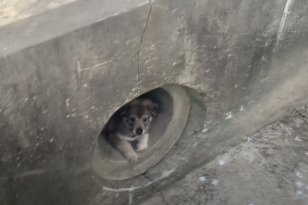 ▼躲在管道中的小狗身體很虛弱,好心人本想帶牠去看獸醫,但牠膽子太小,看到有人過來竟然躲到了管道深處,不願意出來。