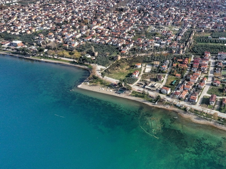 ▼伊茲尼克湖的面積約有298平方公里,最深處有80米。教堂遺址就位於距湖面約20米的湖底。疫情期間土耳其當局發布封鎖令,工廠和經濟活動都停擺,人們也待在家中隔離防疫,減少外出,不僅空氣變好,湖水也變得清澈了。