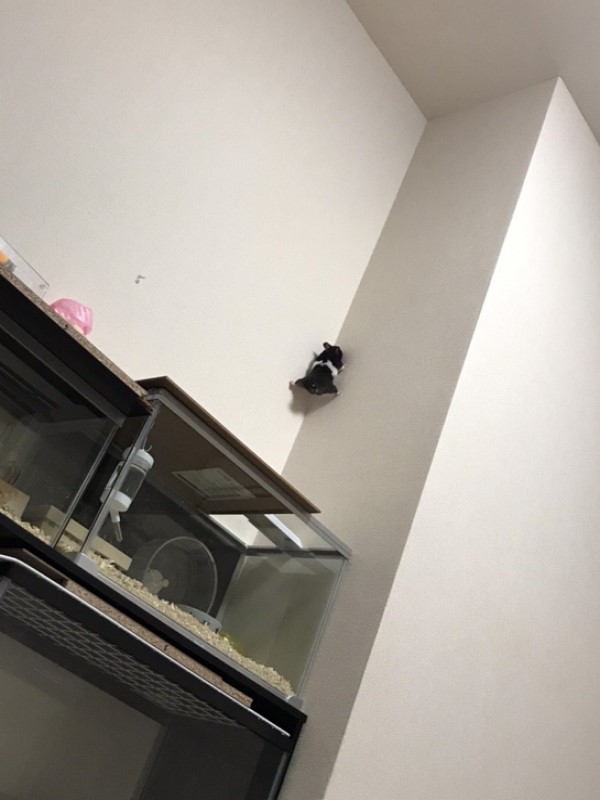 2020年07月15日小倉鼠的運動天賦太強了吧!日本推主@mx1hr養了好幾隻寵物,有貓咪、兔兔和倉鼠。最近她把小倉鼠Kuro的窩安置到牆角,沒想到活潑好動的Kuro竟然徒手爬牆,沿著牆角垂直向上爬逃家。她忍不住拍照po上網,大家看到後卻被Kuro結實的小屁股吸引了。