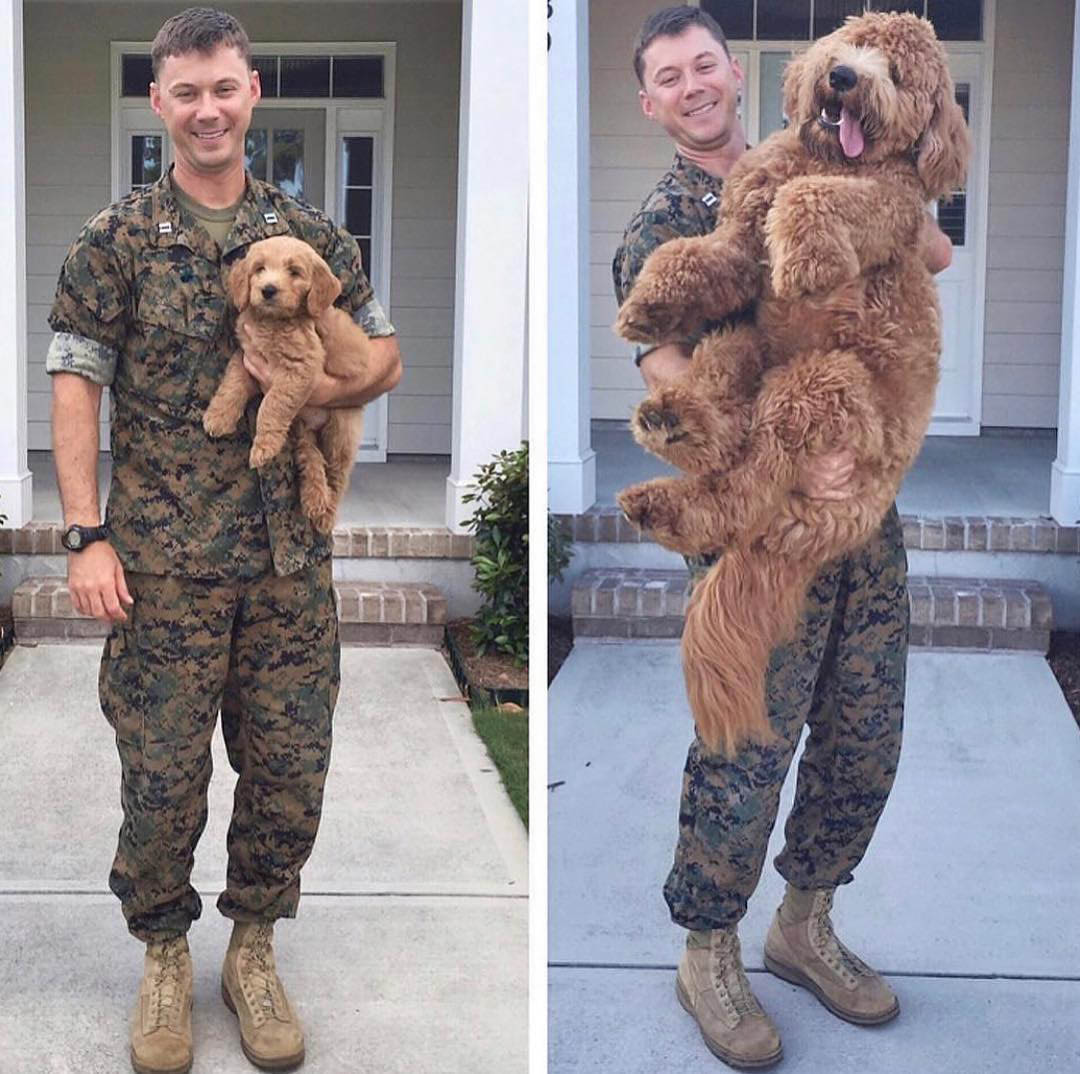 真的長成熊了!31張汪汪「小時候VS長大後」對比圖 變大了習慣還是寶寶❤