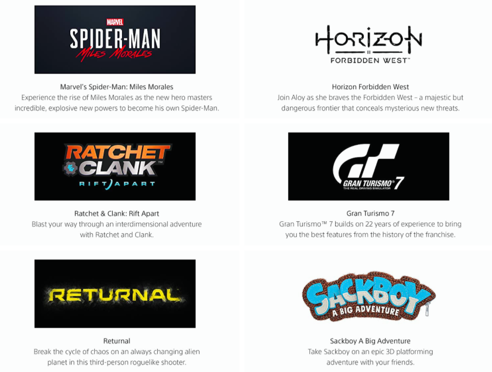 ▼PS5有很多遊戲可玩,包括《Marvel’s Spider-Man: Miles Morales》、《Project Athia》、《Gran Turismo 7》、《Hitman III》、《Resident Evil Village》等等。
