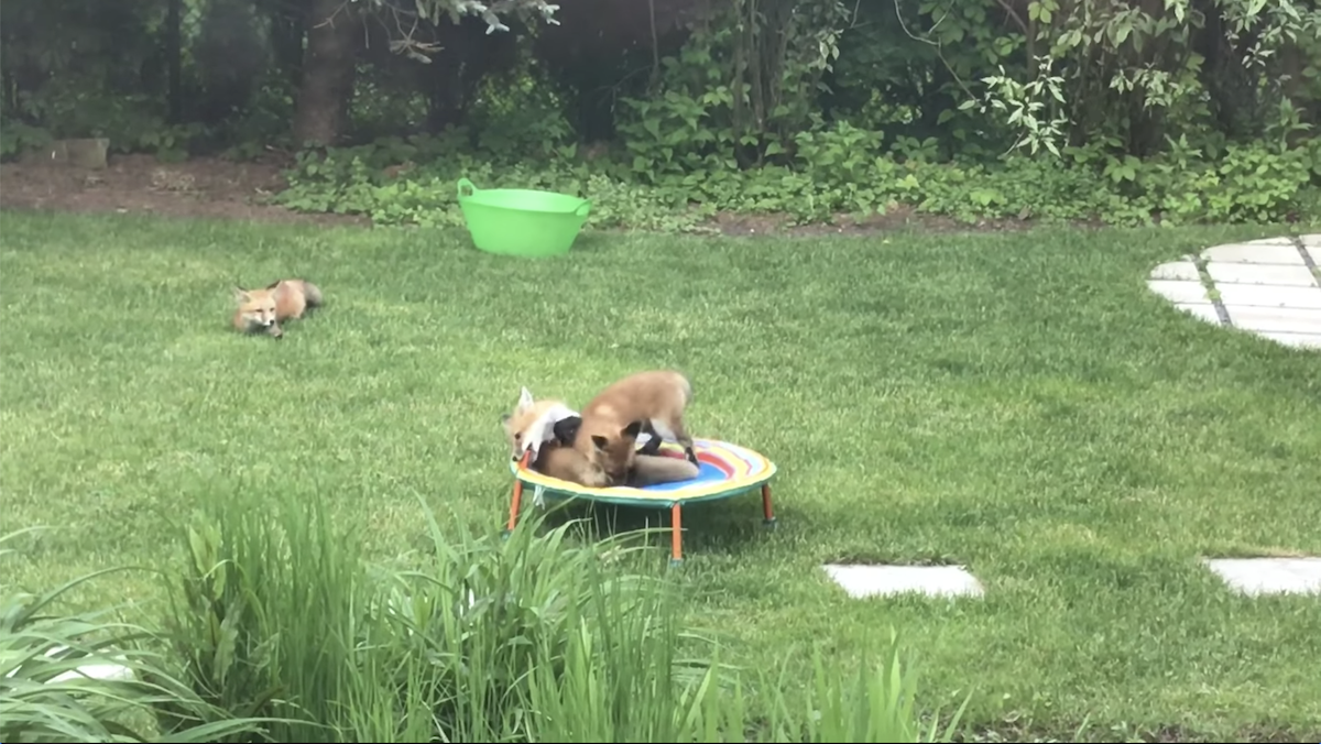 ▼狐狸一天會來拜訪戴維斯家好幾次,還會在草坪上互相咬來咬去、睡午覺,甚至還會跳上後院的跳跳床上嬉戲,互相在草地上追逐奔跑、伸展筋骨,狐狸們感覺非常自在,讓戴維斯一家都覺得看著好棒!