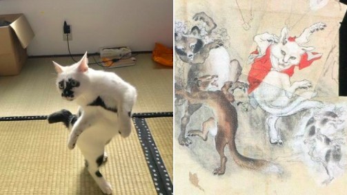 ▼還有很多網友說牠長得像《浮世繪》裡的貓妖怪,看看對比圖,相似度果然很高!