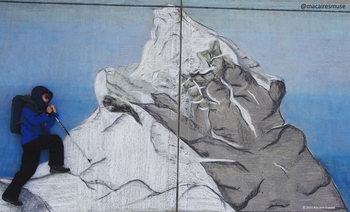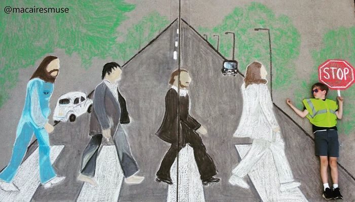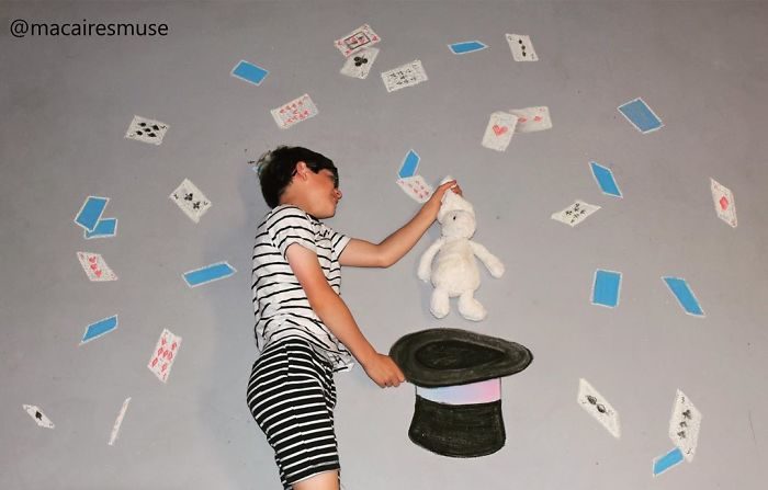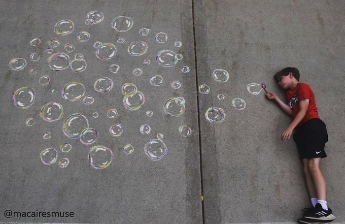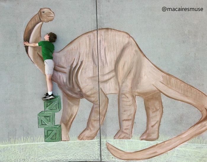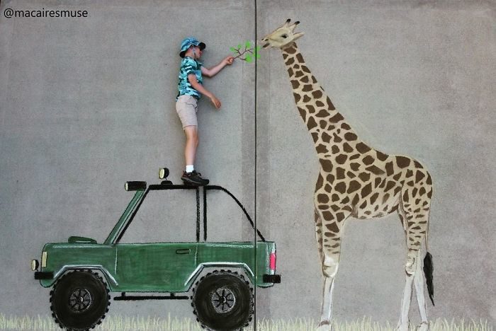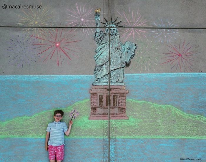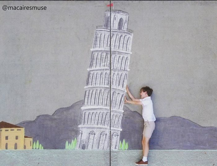 2020年07月19日現在COVID-19還沒有過去,並不是出國旅行的好時機。不能在現實中旅行,卻可以運用想像力在藝術的海洋裡暢遊一番~國外14歲女孩Macaire Everett很擅長畫粉筆畫,她9歲的弟弟Camden很想到世界各地旅行,於是Macaire在家門前畫了豐富的粉筆畫,給弟弟拍攝有趣的旅行照。弟弟伴隨姐姐的畫作到處旅行,他們的冒險沒有結束,還在繼續進行中。