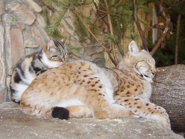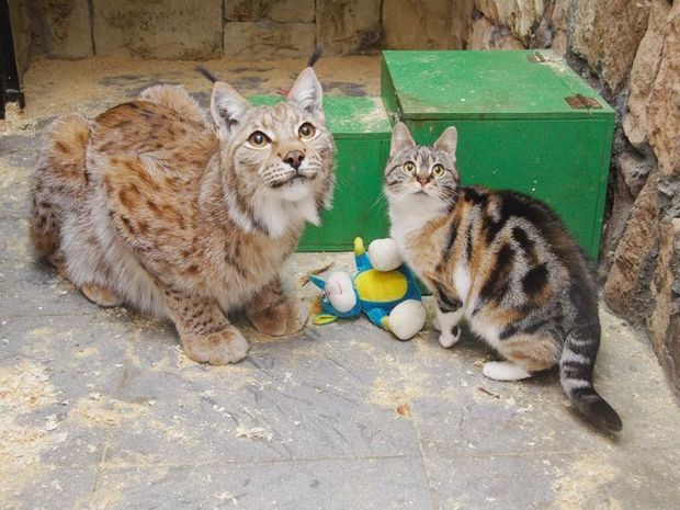 ▼這就是曾經流浪的貓咪Dosha和山猫Linda,是不是超可愛!