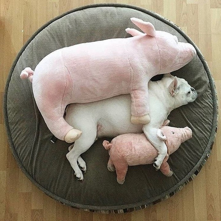 ▼胖乎乎的狗狗和小豬造型的玩具非常配。