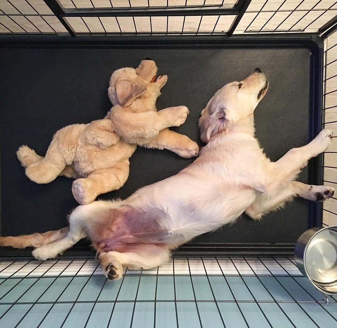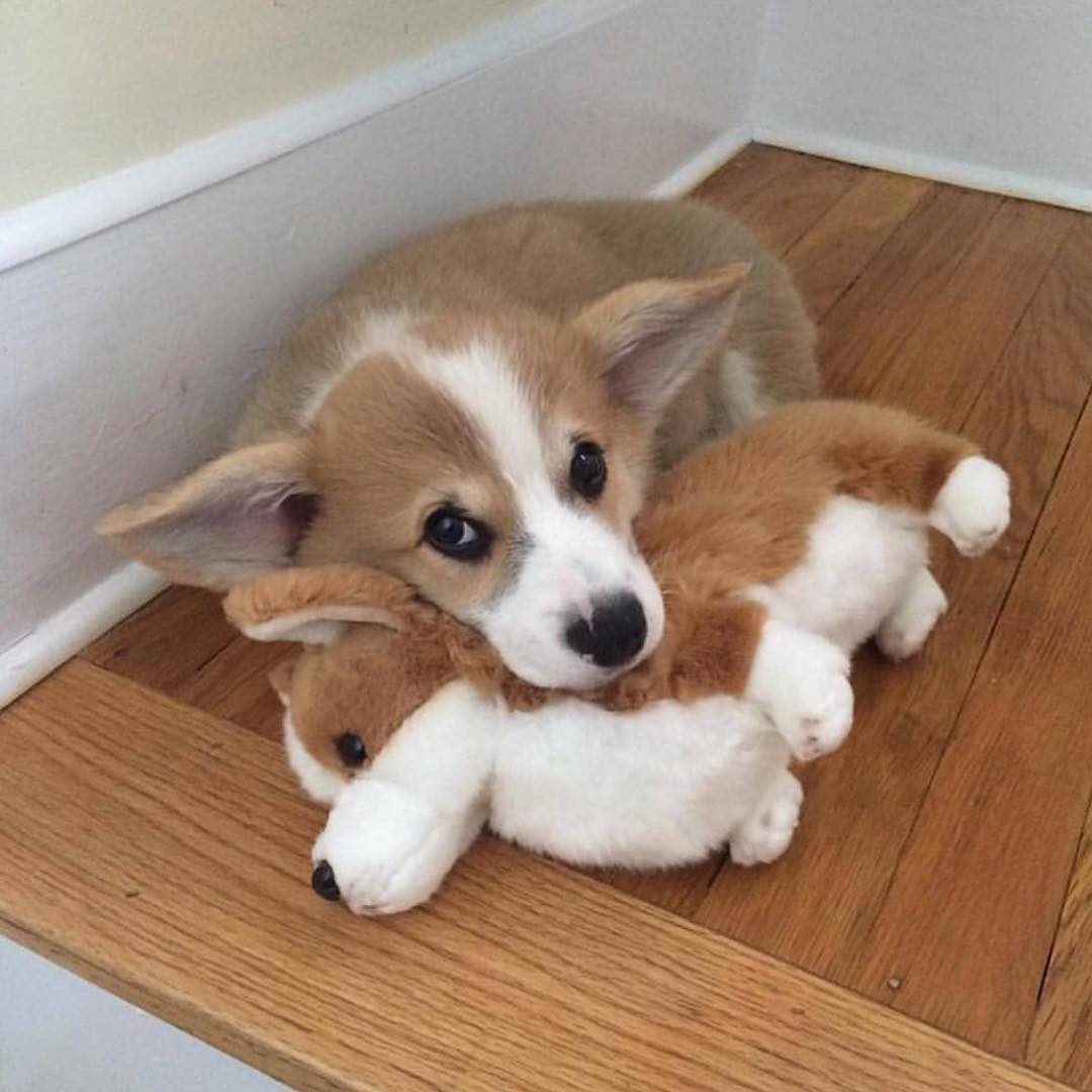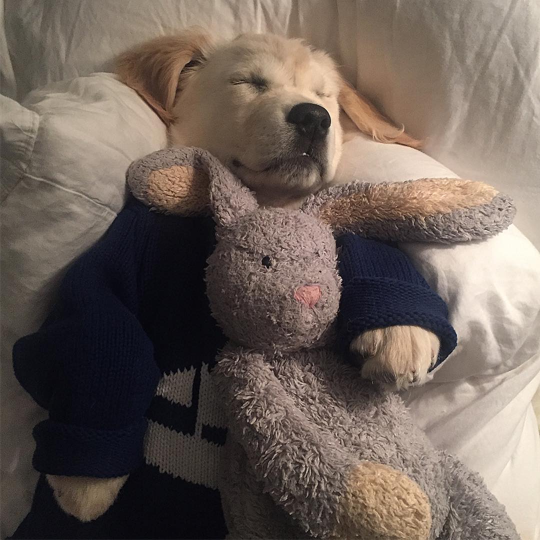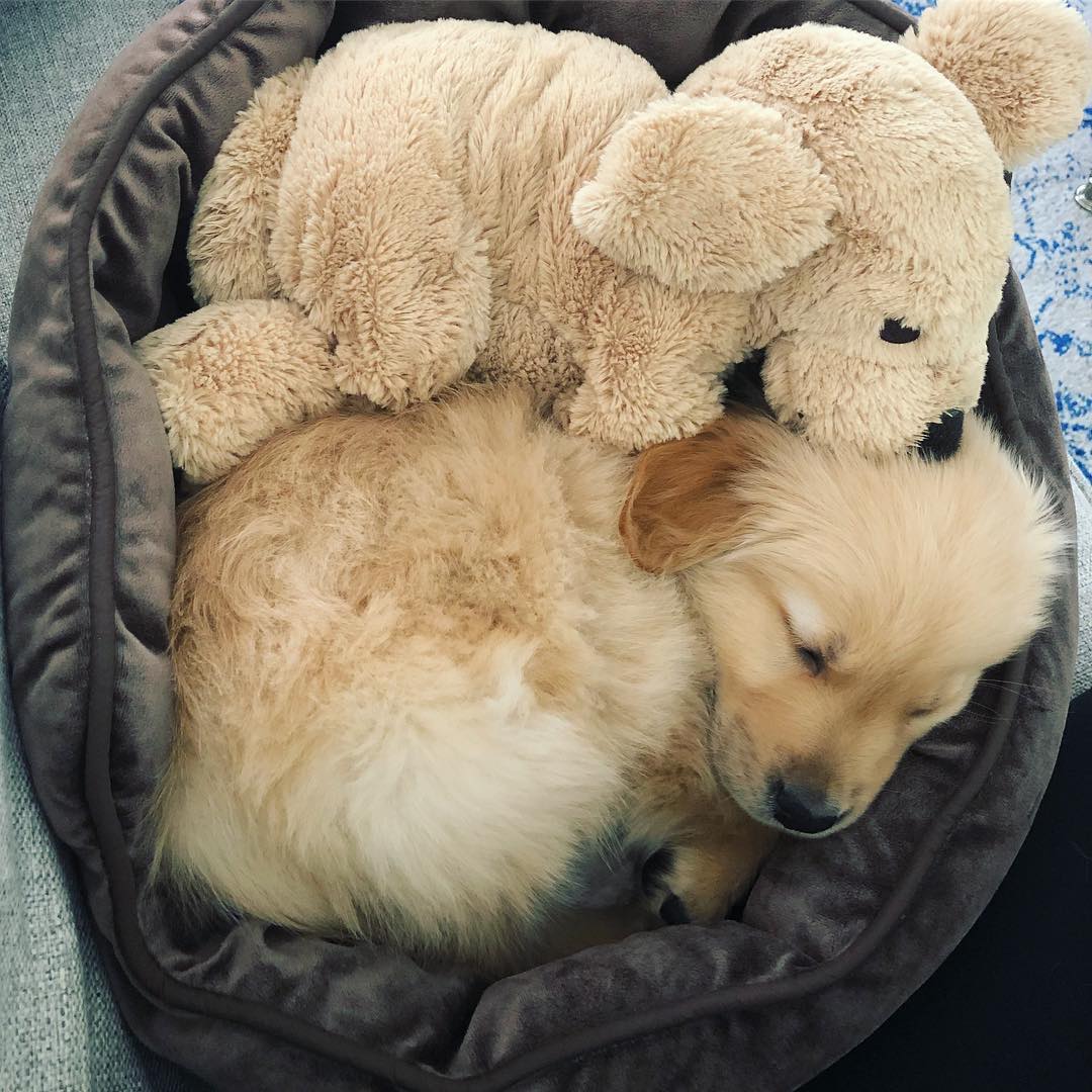 睡覺也喜歡抱抱~ 小奶汪們「緊摟娃娃」超療癒 還要陪著一起長大❤