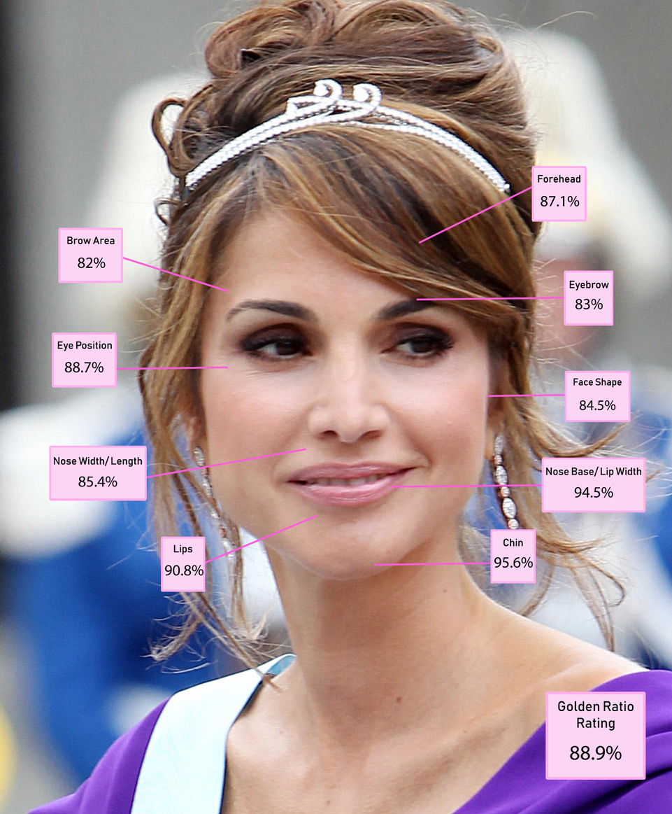 ▼第2名:88.9%,現年49歲的約旦王后拉妮亞,曾被譽為阿拉伯世界的黛安娜,被公認是美貌、智慧兼備的王后。有著五位中最完美的下巴和嘴唇,也是目前在世的皇室最美第一人。