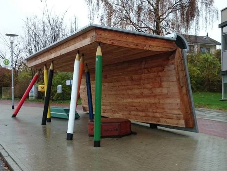 ▼8.這個公車站設計成了書本的模樣。