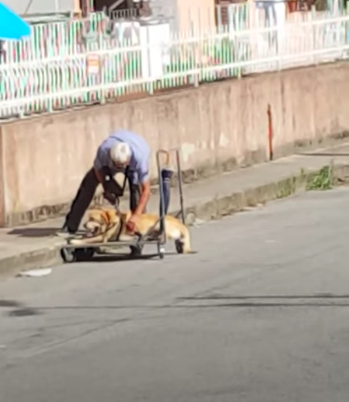 2020年07月25日狗狗對主人的愛永遠不會變,但很多狗狗會因為「太老」被趕出家門。幸好並不是所有的主人都那麼狠心,還是有人願意好好照顧老狗,將牠們當成真正的家人和朋友。義大利老人Tonino Vitale養了一隻叫Dylan的狗狗,Dylan已經13歲,因為年齡太大行動不便,但Tonino還是會每天帶牠出門散步。