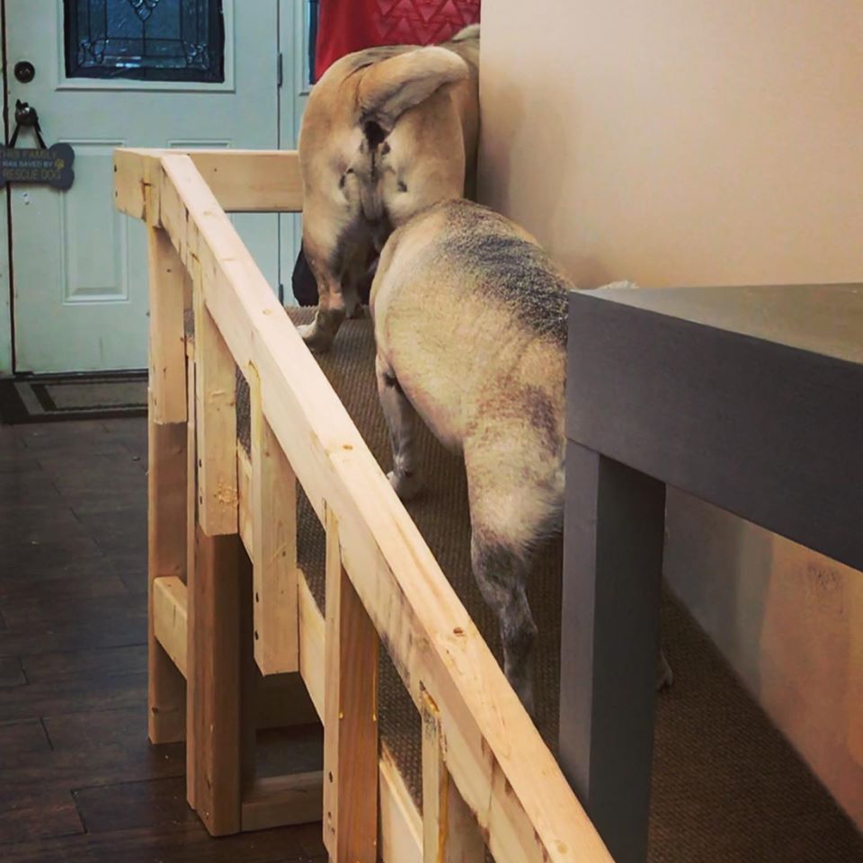 ▼Sonya是一位職業治療師,她在工作中看過長輩使用升降機,認為這種設施對上了年紀的人來說很有用。因為市面上沒有寵物用的升降機,所以她和男友花3個月的時間DIY,為狗狗們量身設計了一個升降機。