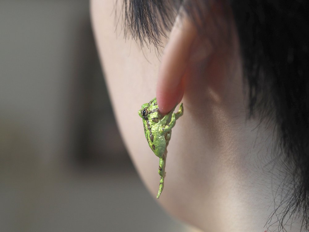 現在才發現原來青蛙掛在人類的耳垂上,畫面竟然沒有太多的違和感,反而還會令人感覺有些可愛!不過對於討厭青蛙的人來說,這些耳環絕對會造成心理陰影吧!如果你也喜歡 Nina 的這些作品,可以在這裡參考更多她的作品!
