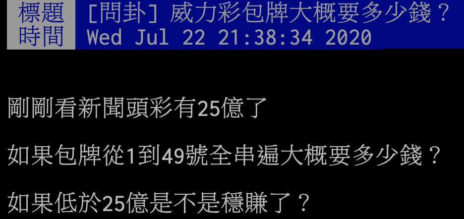 威力彩飆新高「上看31億」 他疑惑發問「包牌不就穩贏?」 網友幫分析:別想不開