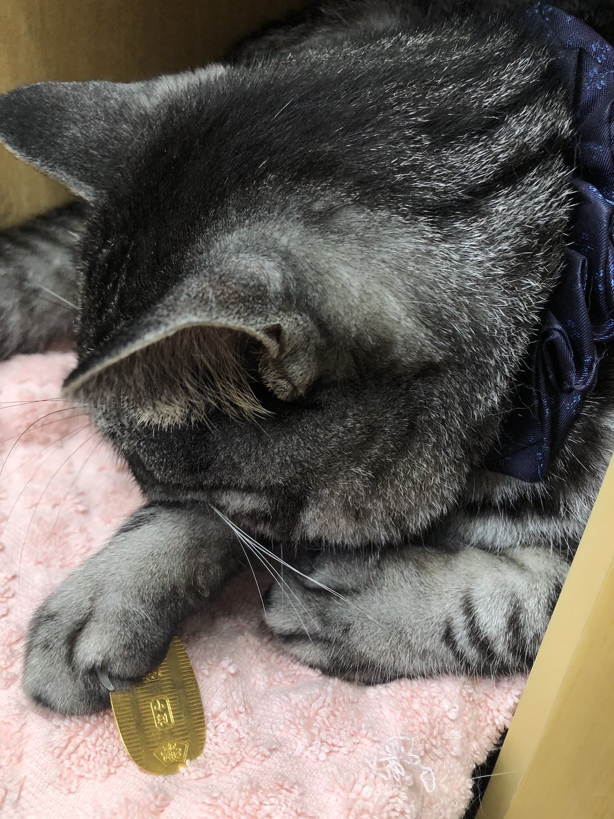 ただ本日は棚の中で寝ているのではなく、バズった影響から密を避けて自粛だそうです!