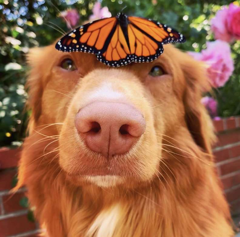 2020年07月28日狗狗擁有接近7歲小朋友的智商,牠們善解人意,和很多動物都能建立跨物種的友誼,甚至是和昆蟲!國外有隻狗狗米洛(Milo)從小就和媽媽珍.本內特(Jen Bennett)一起在花園中忙進忙出,兩年前珍開始飼養君主斑蝶,米洛也參與了蝴蝶從幼蟲到蛹,再到變成蝴蝶的整個成長過程,毫不介意蝴蝶們停在自己身上休息~