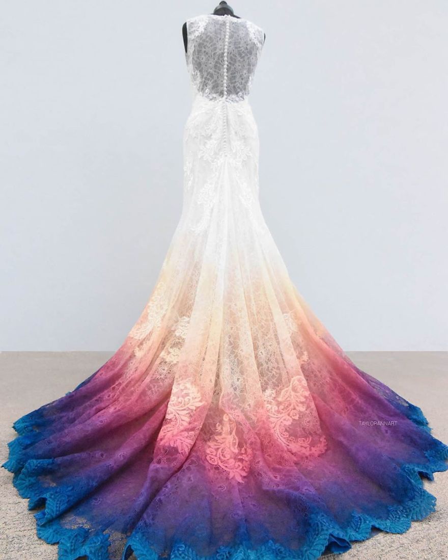 2020年07月29日國外女孩Taylor Ann Linko非常喜歡設計,從小就夢想成為藝術家。她對於「美」有獨特的見解,在自己的婚禮到來之時,親自改造純白婚紗,為婚紗增添色彩。這不僅讓她驚艷全場,還讓她實現了成為藝術家的夢想。