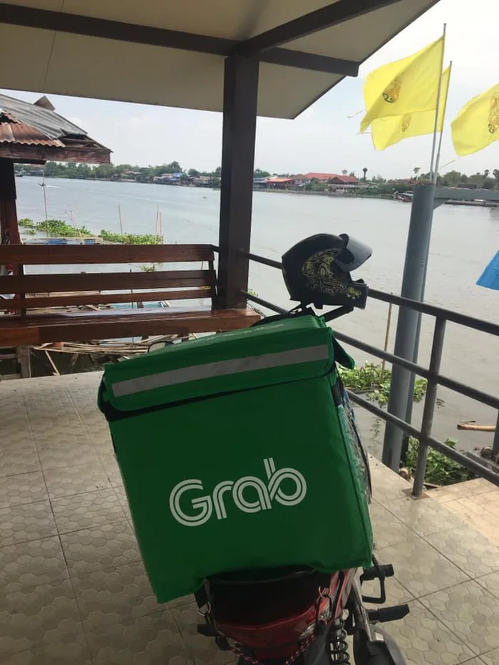 ▼這位名叫Ake KB的外送員與東南亞知名叫車平台《Grab》合作,有一天,他發現點餐的顧客位置居然是在「河中央」,便將這段有趣的經驗分享到臉書上。