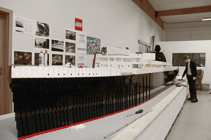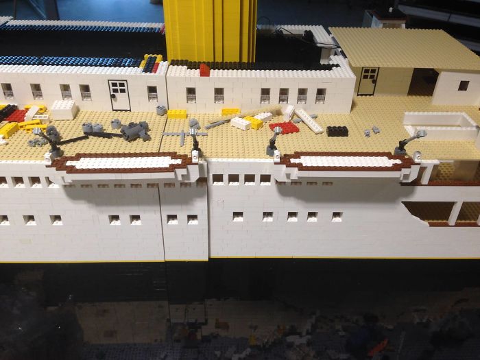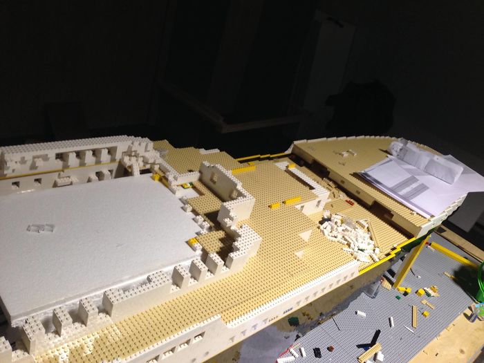 ▼另外他也利用了倉庫的空間,每天放學都花上3到4個小時的時間來製作這艘模型,在經過了11個月後,他終於完成了這艘樂高的鐵達尼號,可以看到船上的細節都有做到,而完成品也很讓人驚嘆。