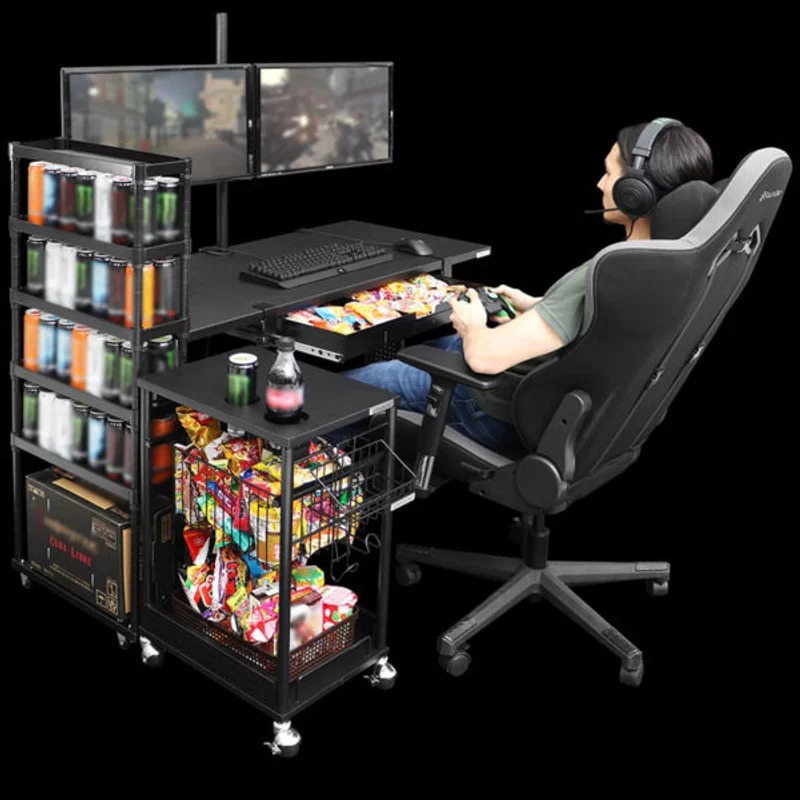 坐上去就黏住! 電玩宅神器「廢人電腦桌」 零食、飲料架「一次全包」:根本不想離開~