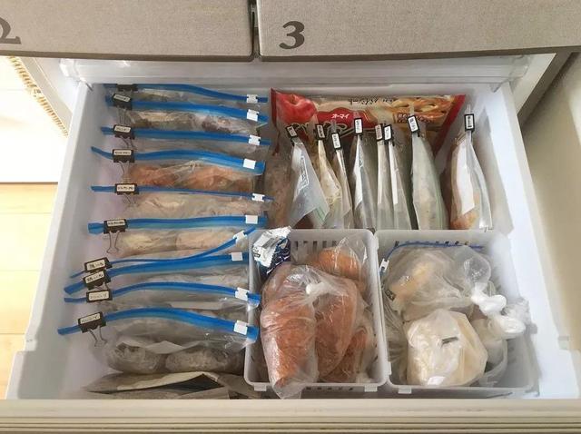 ▼主婦將食物裝進保鮮袋中,還貼上了標籤,哪些臨近過期,現在一目了然。