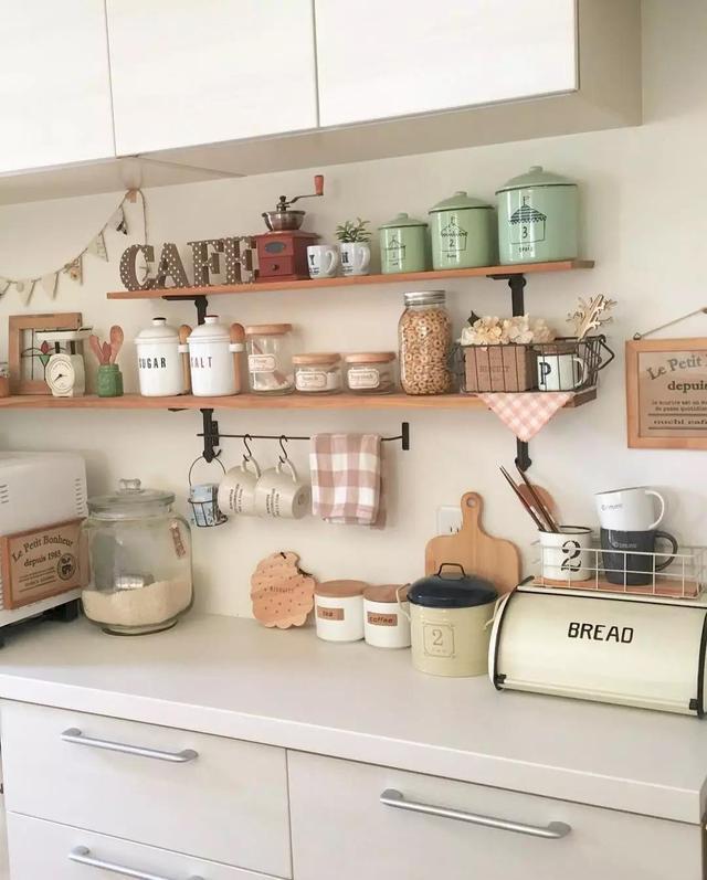 ▼廚房中東西很多,調料罐、餐具、清潔用品等等都被分門別類放在合適的地方,特別整齊。