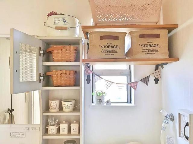 ▼再來看看廁所,整體白色調,顯得乾淨整潔。因為地面空間不足,他們就向上做了很多收納設計,充分利用了整體空間。