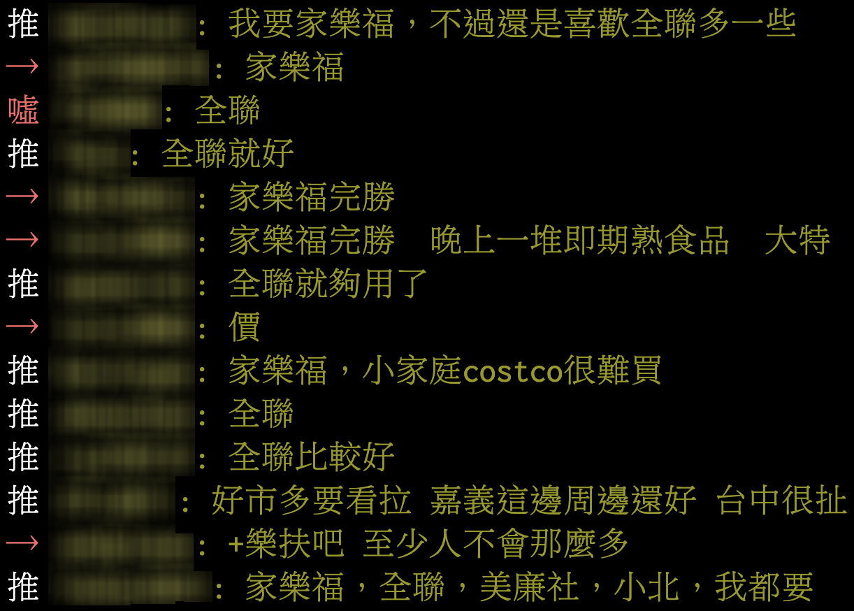 ▼原PO在PTT的八卦版上發文,表示住家附近有間家樂福或是好市多,「哪一個比較實用、對生活方便度最高」,想知道網友們的看法。文章引起PTT上網友們的熱烈討論。