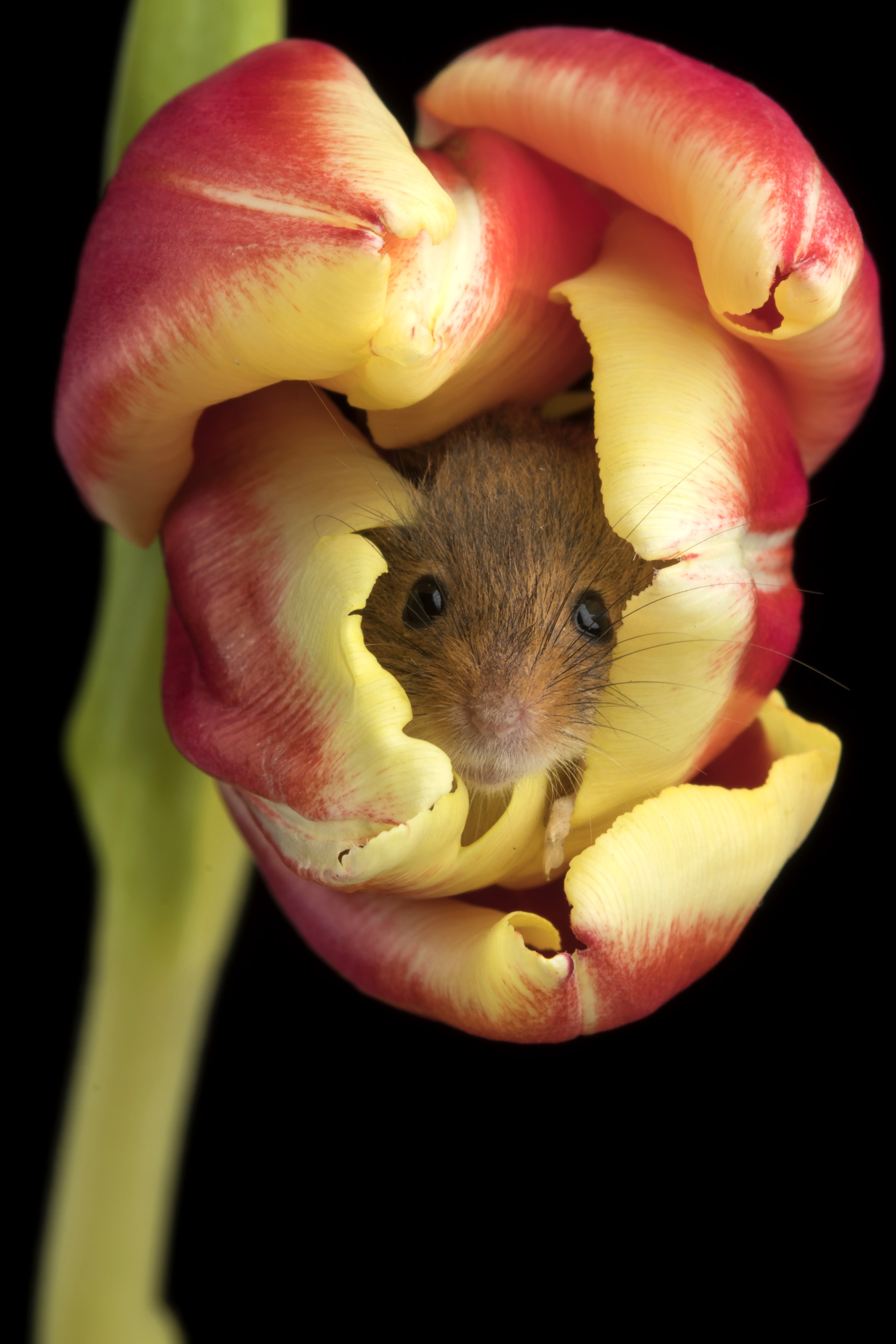 小鼠窩在鬱金香花苞中的畫面超療癒,看到這一系列可愛的照片,不管度過了多麼糟糕的一天都會心情開朗起來吧~