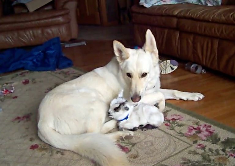 2020年08月09日跨越種族的感情非常特別。國外一名網友養了一隻叫Shadow的雪白德國牧羊犬,牠總是把其他的小動物當成自己的小孩來照顧。一隻侏儒山羊寶寶出現後,Shadow也做了同樣的事,牠化身溫柔養母,把小羊抱在懷裡保護~