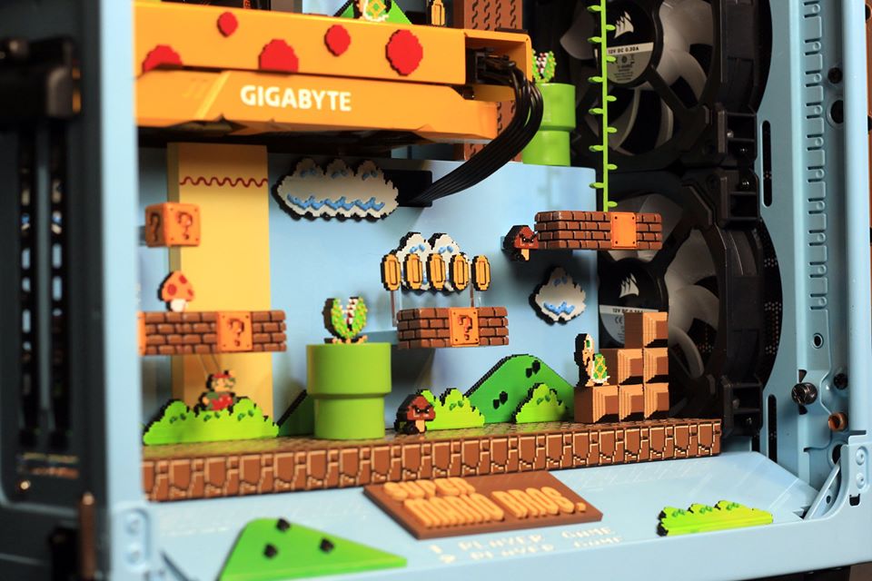 ▼一般的PC玩家改裝電腦時,會想辦法讓電腦看起來更美觀,比如搭配冷光效果等等。「Suchao modding&design」沒有使用傳統的改裝方法,他想要一台瑪利歐主題電腦,就把所有的配件都瑪利歐化。